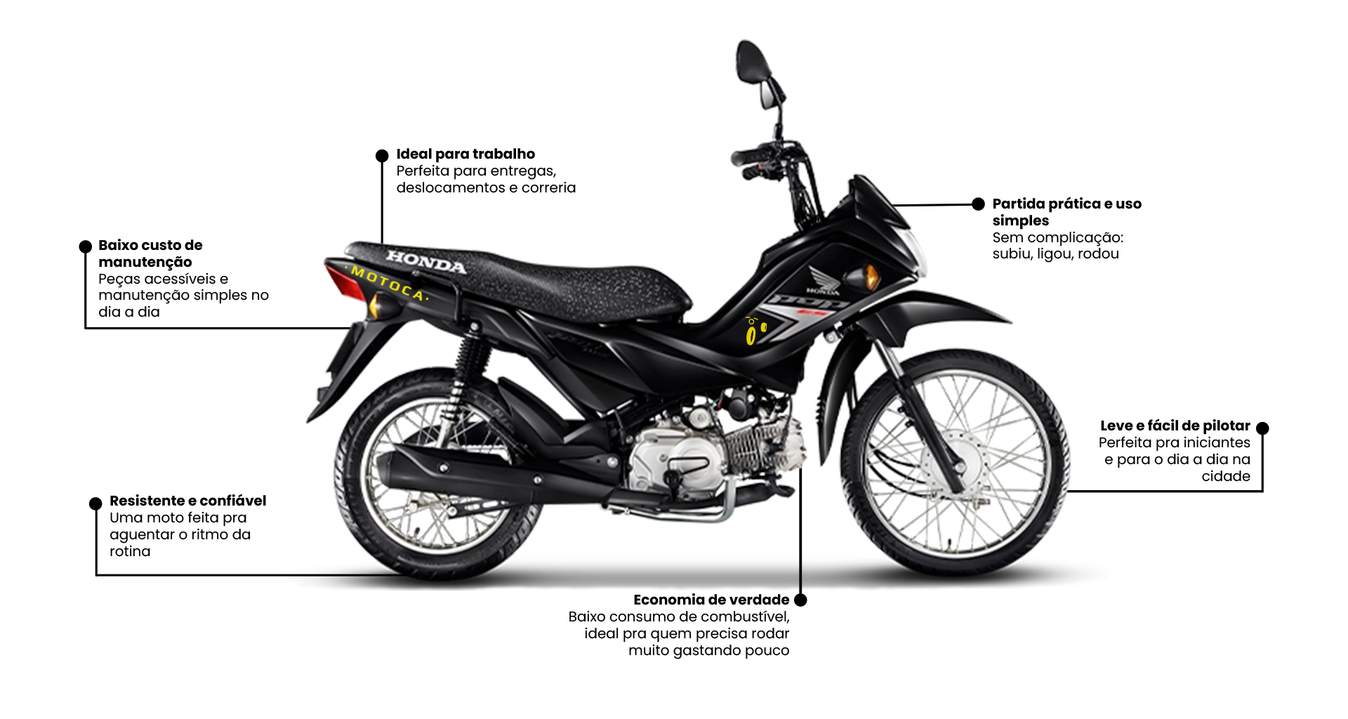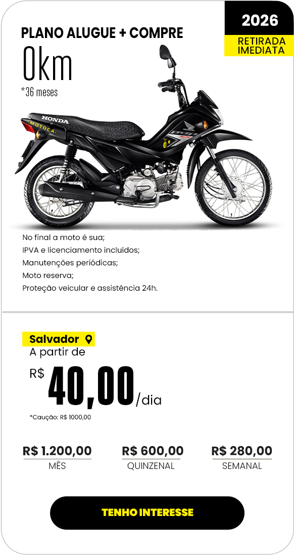 Leve, econômica e prática, ela acompanha sua rotina sem pesar no bolso. Perfeita pra quem precisa de agilidade no dia a dia e quer conquistar sua independência.